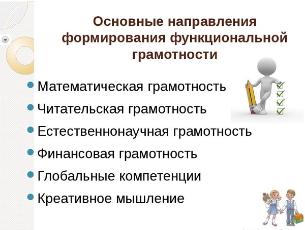 — это умение эффективно действовать в нестандартных жизненных ситуациях. Ее можно определить как «повседневную мудрость», способность решать задачи за пределами парты, грамотно строить свою жизнь и не теряться в ней. Функциональная грамотность сформирована через формат международного исследования PISA.